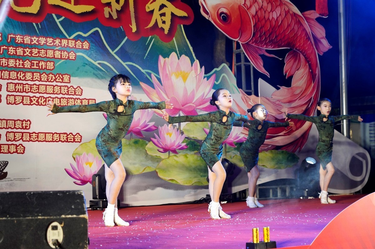 本场晚会不仅有博罗县文化馆带来的专业演出,更有周袁村及周边营盘吓村、马田村和鸡公坑村等地村民自发编排的精彩节目,涵盖舞蹈、歌曲、朗诵、魔术、太极扇等多种形式,赢得了观众的热烈掌声。